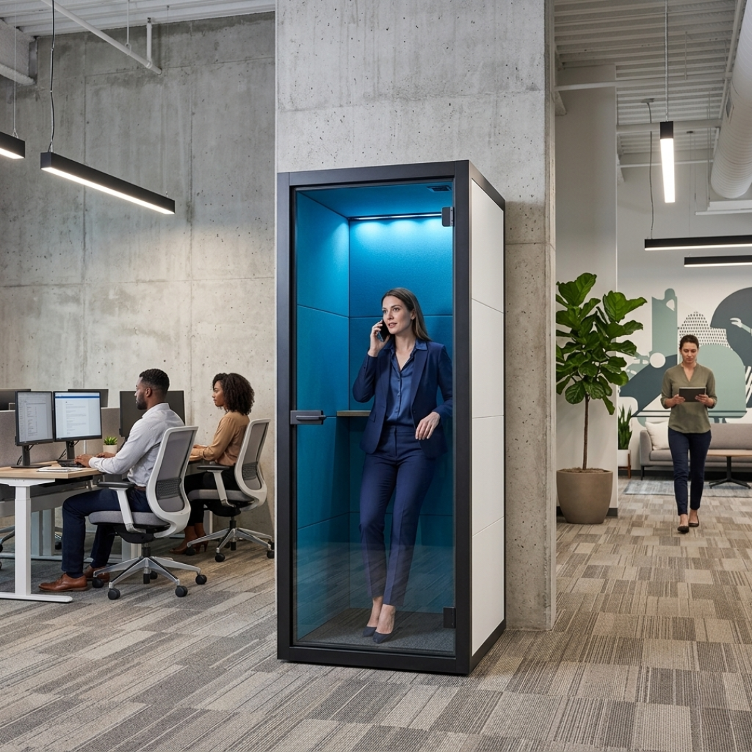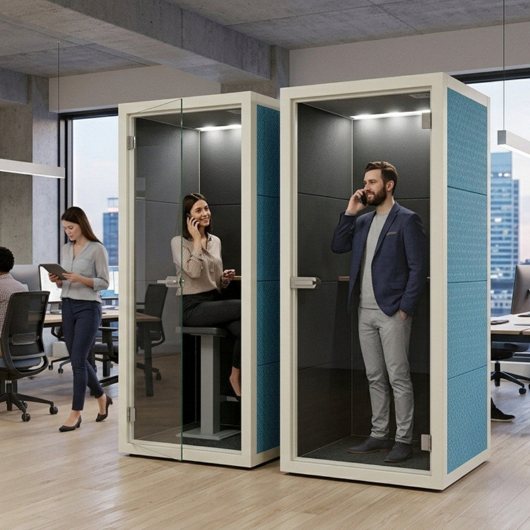 Akustika v kancelářích, a to hlavně typu open space, je v některých případech velký problém, který ovlivňuje soustředění zaměstnanců a pracovní prostředí jako celek. Pro tyto případy máme řešení! Nabízíme systém akustických budek, které dopřejí zaměstnancům potřebný komfort například při telefonování či online hovorech. Jedná se o unikátní produkt české výroby.