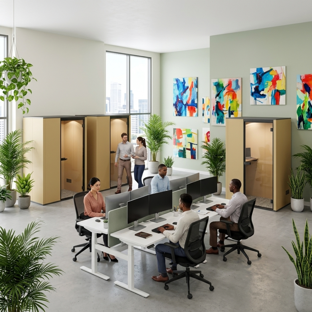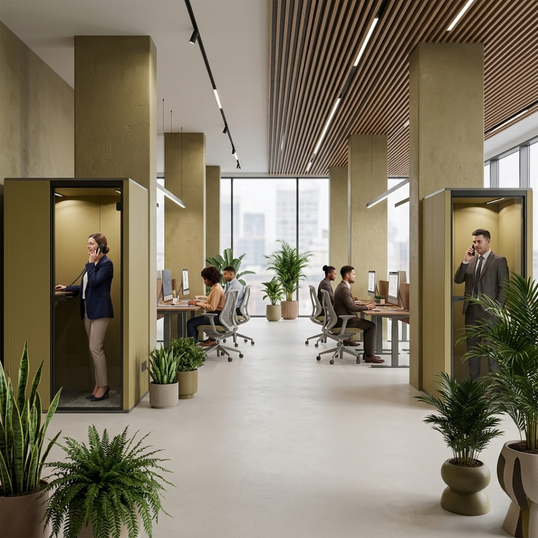 Akustika v kancelářích, a to hlavně typu open space, je v některých případech velký problém, který ovlivňuje soustředění zaměstnanců a pracovní prostředí jako celek. Pro tyto případy máme řešení! Nabízíme systém akustických budek, které dopřejí zaměstnancům potřebný komfort například při telefonování či online hovorech. Jedná se o unikátní produkt české výroby.