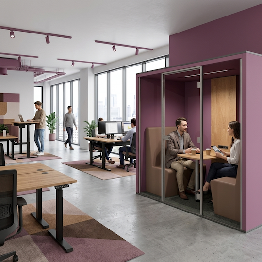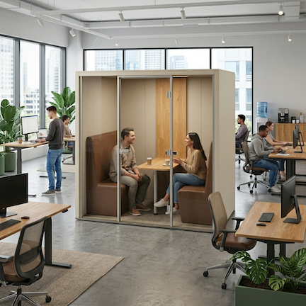 Akustika v kancelářích, a to hlavně typu open space, je v některých případech velký problém, který ovlivňuje soustředění zaměstnanců a pracovní prostředí jako celek. Pro tyto případy máme řešení! Nabízíme systém akustických budek, které dopřejí zaměstnancům potřebný komfort například při telefonování či online hovorech. Jedná se o unikátní produkt české výroby.