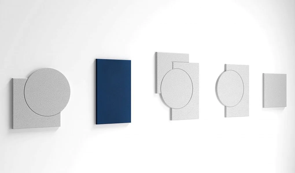 Velkoformátový akustický panel ‣ rozměr 800 x 1300 mm ‣ 49 barev ‣ tloušťka 59 mm ‣ do kanceláří, prostorných chodeb i zasedacích místností ‣ výborná akustická účinnost