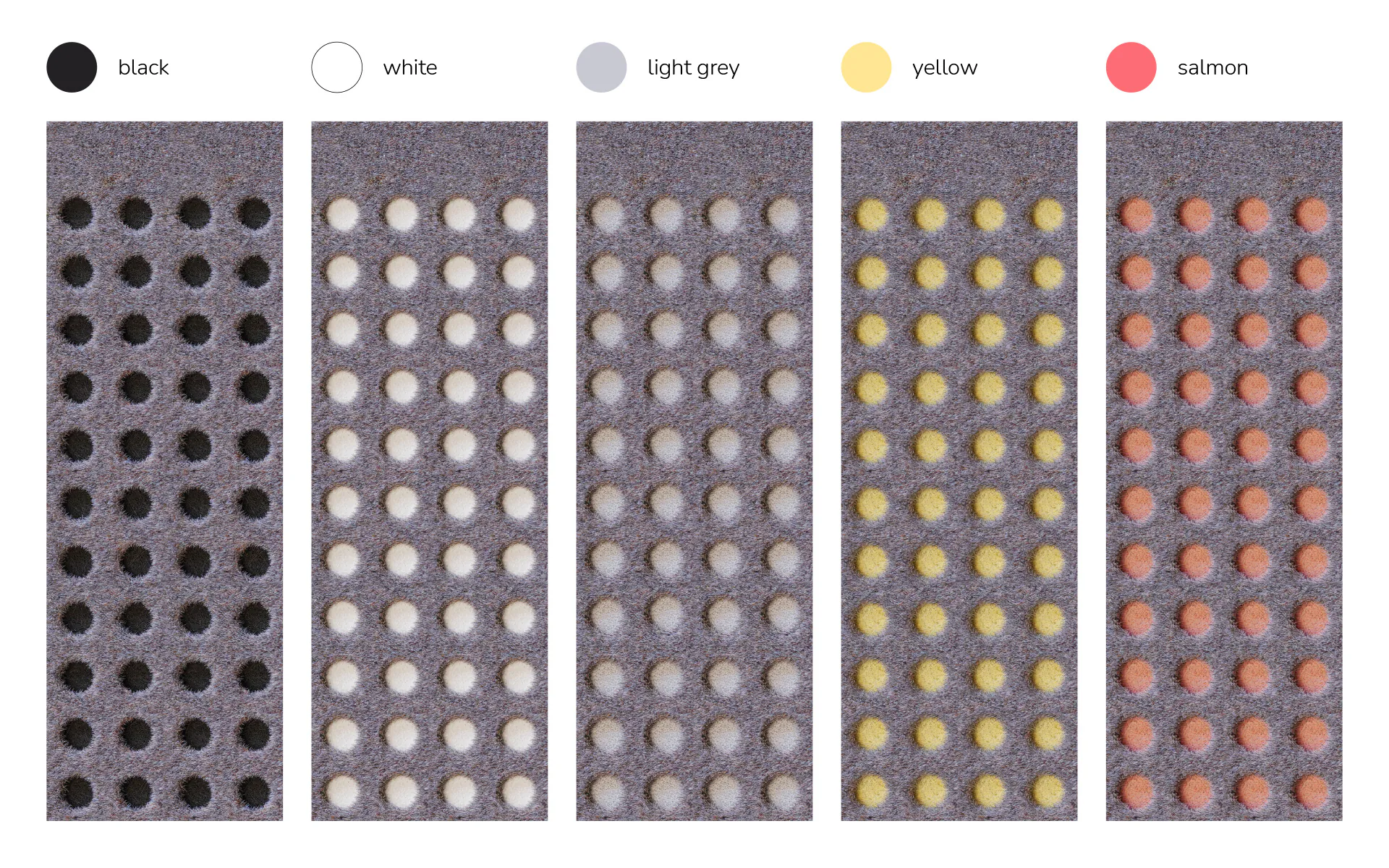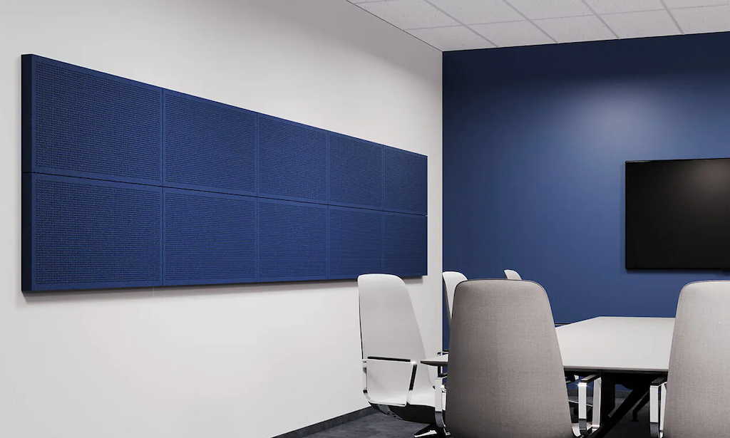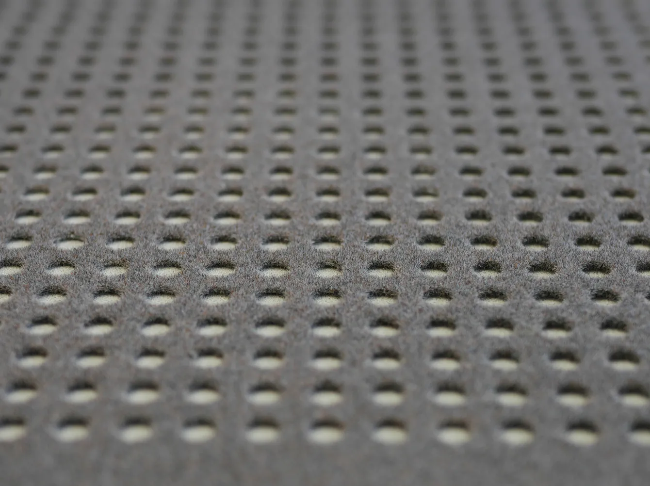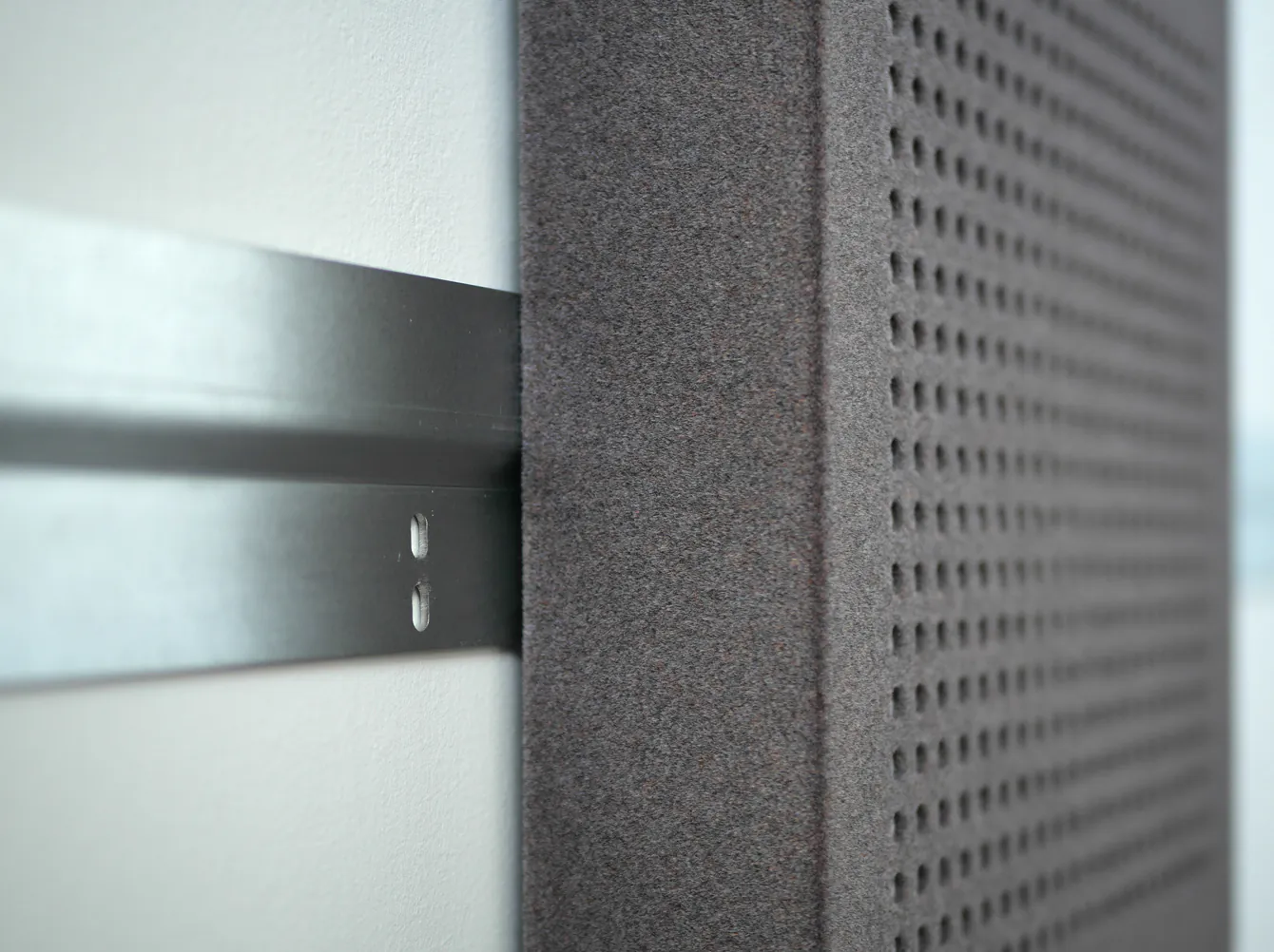 Akustické panely PERFO, navržené speciálně pro kanceláře a veřejné interiéry. Tyto panely vznikají z perforovaných ocelových desek potažených měkkým, barevným povrchem Fluffo, přičemž jejich vnitřní struktura v základních barvách je viditelná skrz dekorativní perforaci. K dispozici jsou v pěti formátech a pyšní se nejvyšší třídou pohlcování zvuku i certifikovanou nehořlavostí.
