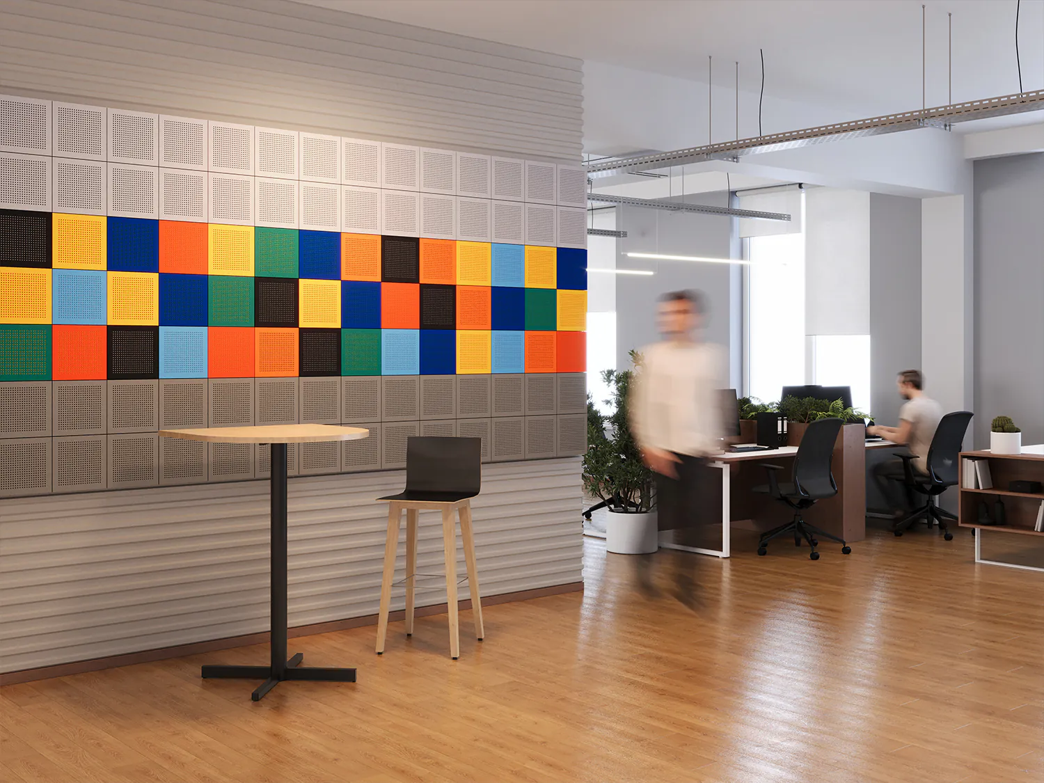 FLUFFO PERFO panely vytvářejí bezpečné, funkční a příjemné prostředí pro práci – ideální do kanceláří nebo zasedacích místností.