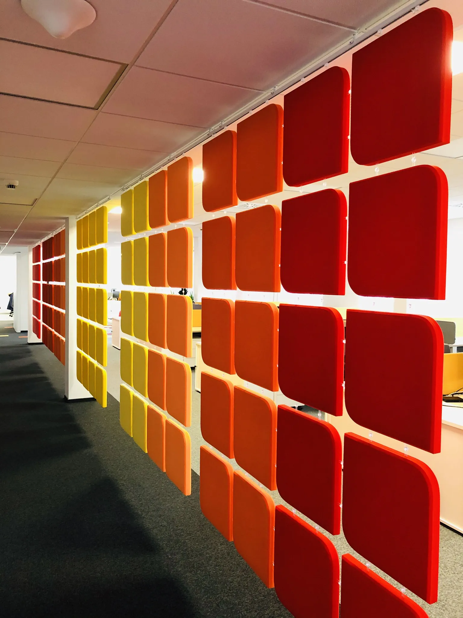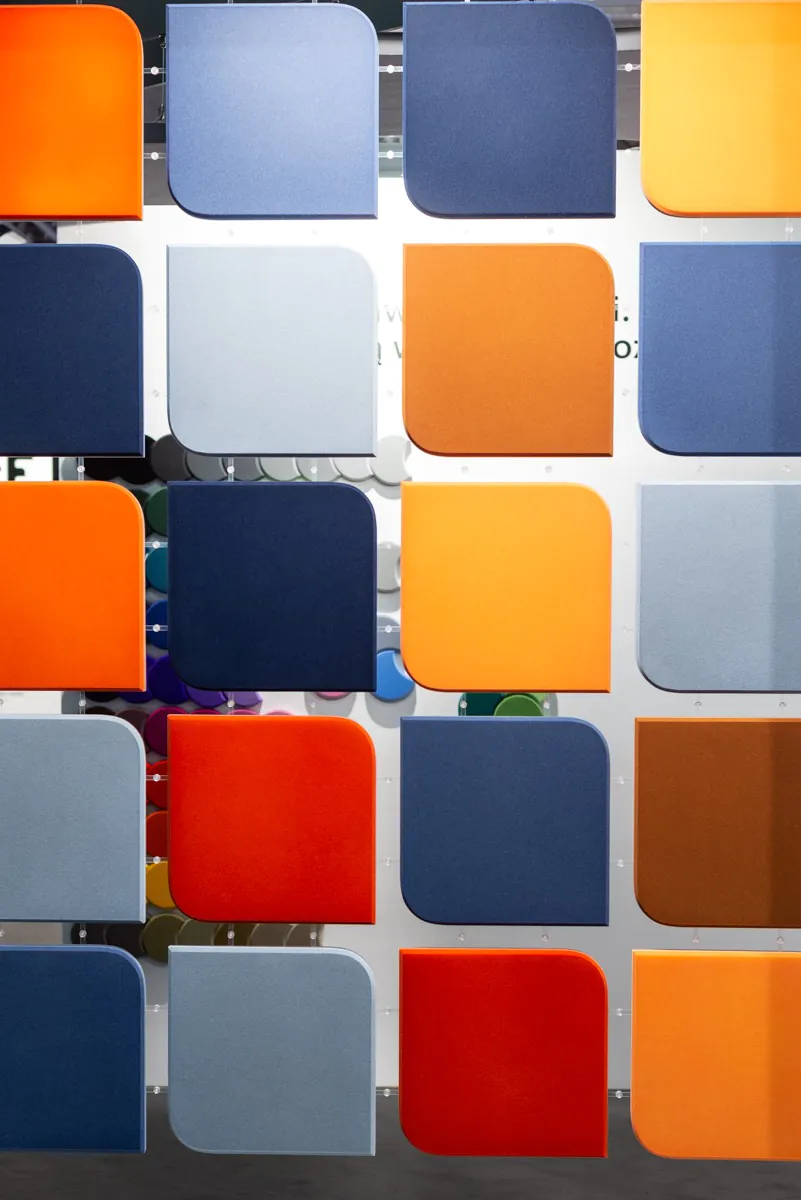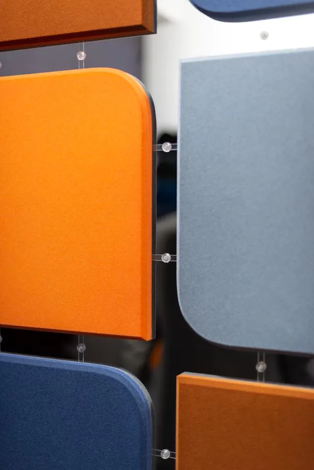 Akustické závěsy Fluffo WEB jsou ideálním řešením pro interiéry, kde je instalace jiných akustických materiálů omezená. Díky své lehké, otevřené struktuře prostor jemně členicí, zatímco jejich barva a tvar vytvářejí správnou atmosféru interiéru.