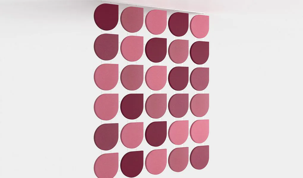Akustické závěsy Fluffo WEB jsou ideálním řešením pro interiéry, kde je instalace jiných akustických materiálů omezená. Díky své lehké, otevřené struktuře prostor jemně členicí, zatímco jejich barva a tvar vytvářejí správnou atmosféru interiéru.