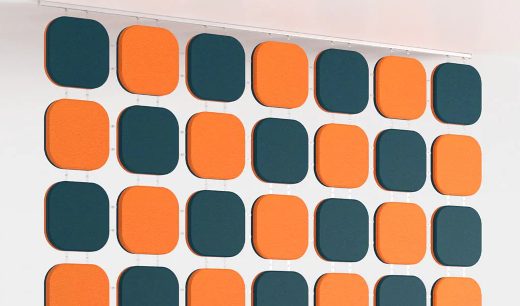 Akustické závěsy Fluffo WEB jsou ideálním řešením pro interiéry, kde je instalace jiných akustických materiálů omezená. Díky své lehké, otevřené struktuře prostor jemně členicí, zatímco jejich barva a tvar vytvářejí správnou atmosféru interiéru.
