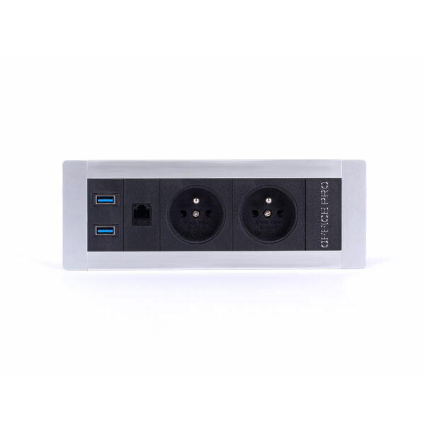 Přípojné zásuvkové místo PTCZ 016 (2x el. zásuvka, 2x USB 3.0, 1x data). Vault pro snadnou organizaci kabelů. Vestavěný elektrický panel do stolové desky.