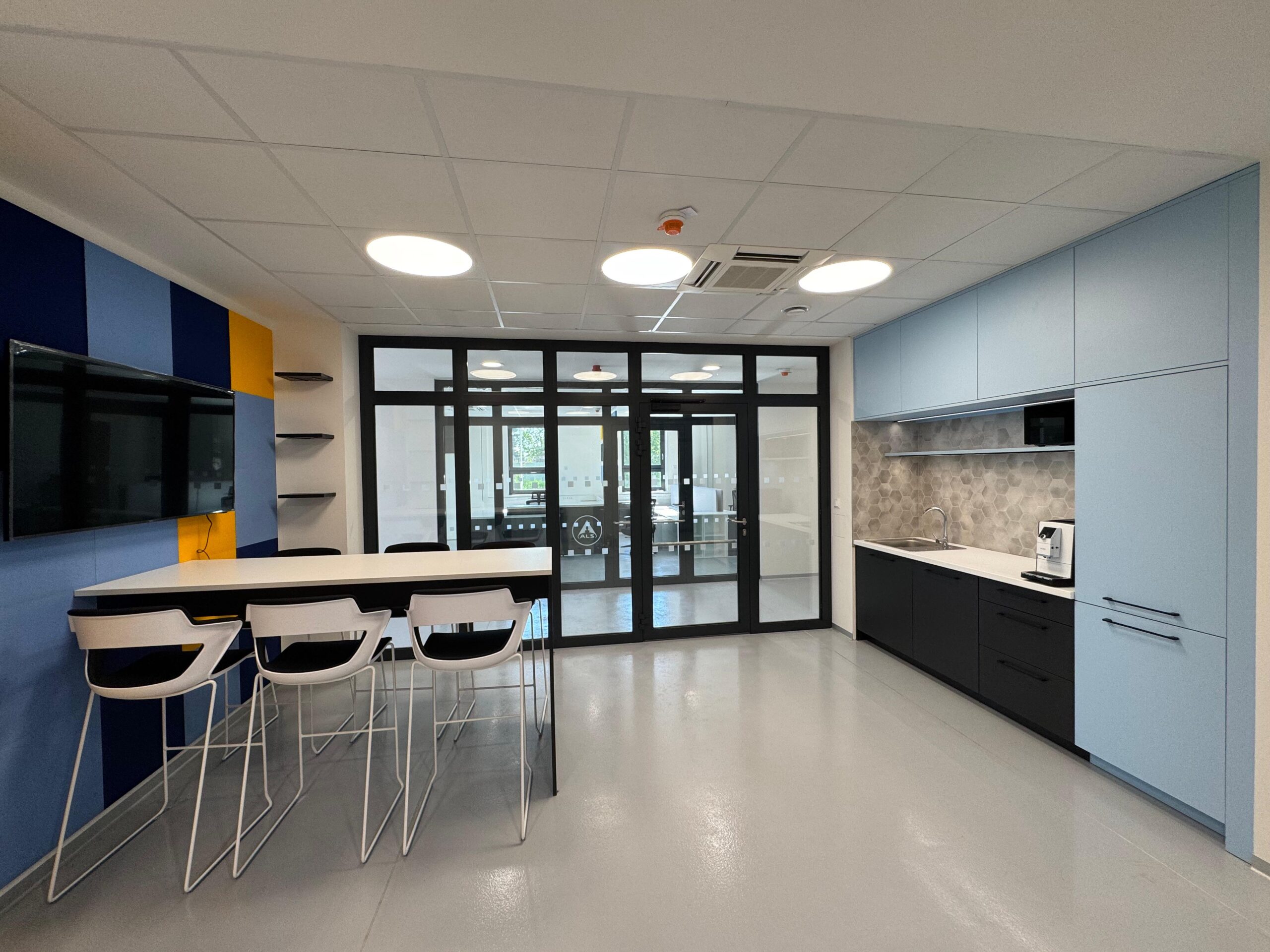 Naše společnost úspěšně zrealizovala kompletní vybavení kancelářských prostor pro firmu ALS, provozující moderní analytické laboratoře. Postarali jsme se o dodání a instalaci veškerého vybavení – od pracovních místo pro 40 osob, přes moderně řešené kuchyňky a jídelnu, pohodlné zóny pro odpočinek, zasedací místnosti, recepci až po praktické úložné systémy. Výsledkem je funkční a esteticky příjemné pracovní prostředí, které napomáhá efektivitě práce i celkovému komfortu týmu společnosti ALS.