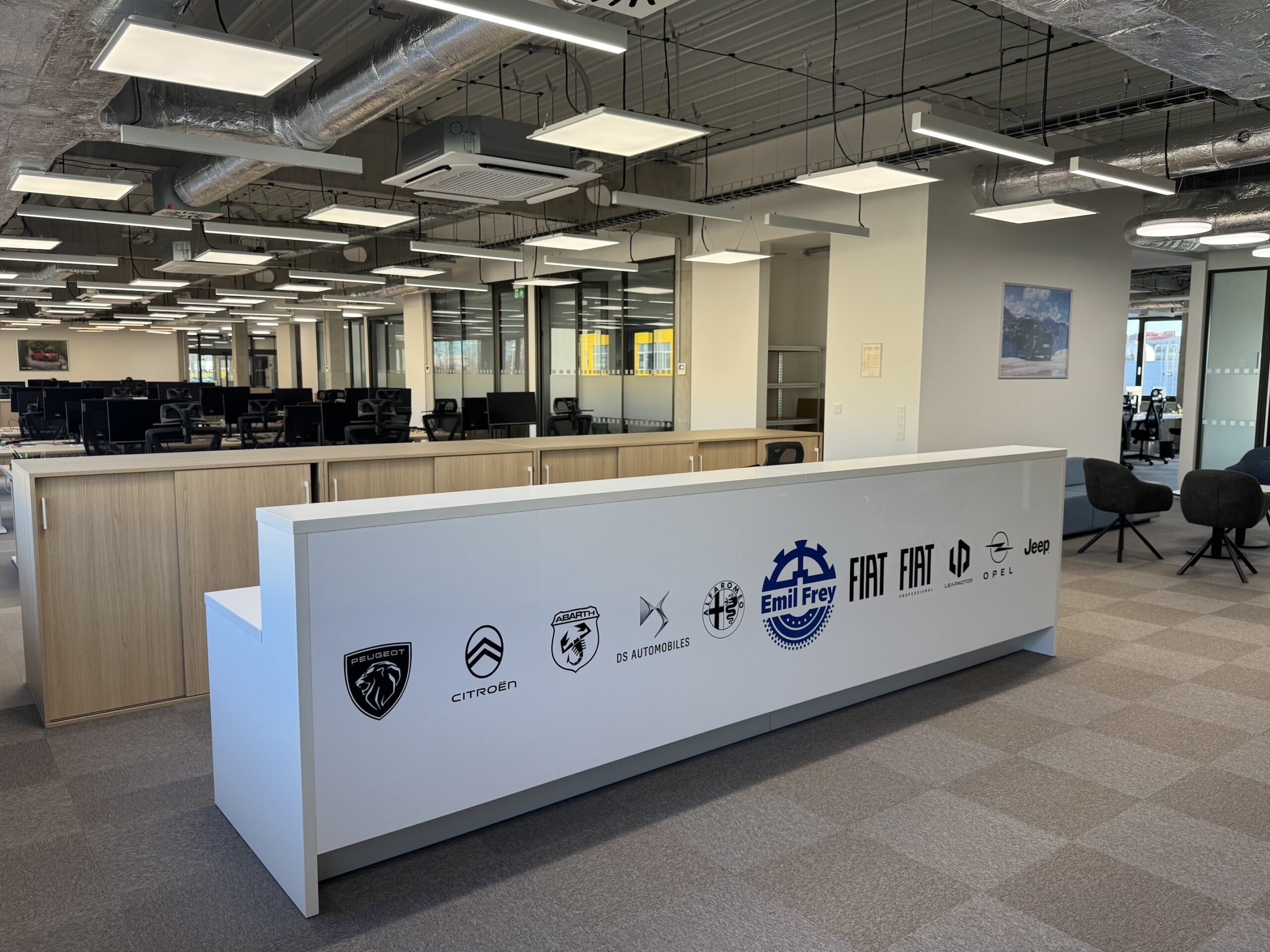 Výsledkem je moderní, ergonomické a esteticky sladěné pracovní prostředí, které podporuje efektivitu, pohodlí i firemní kulturu společnosti Emil Frey.