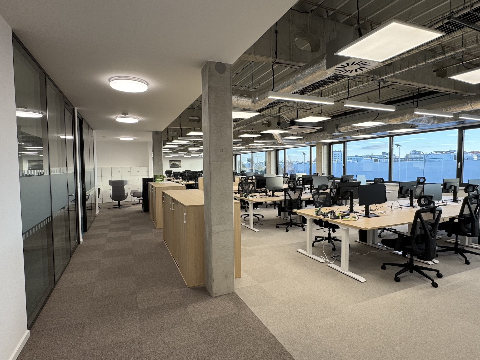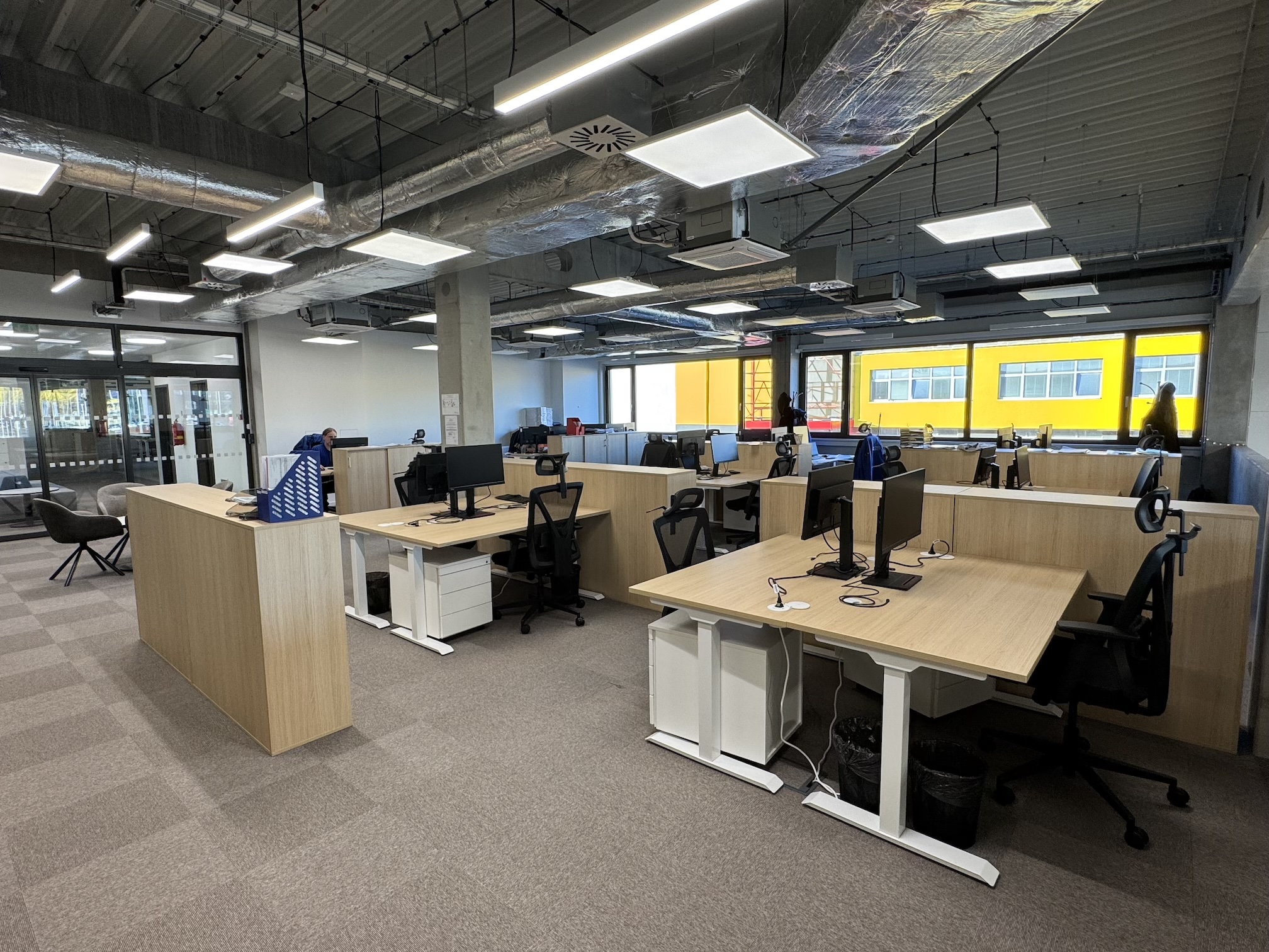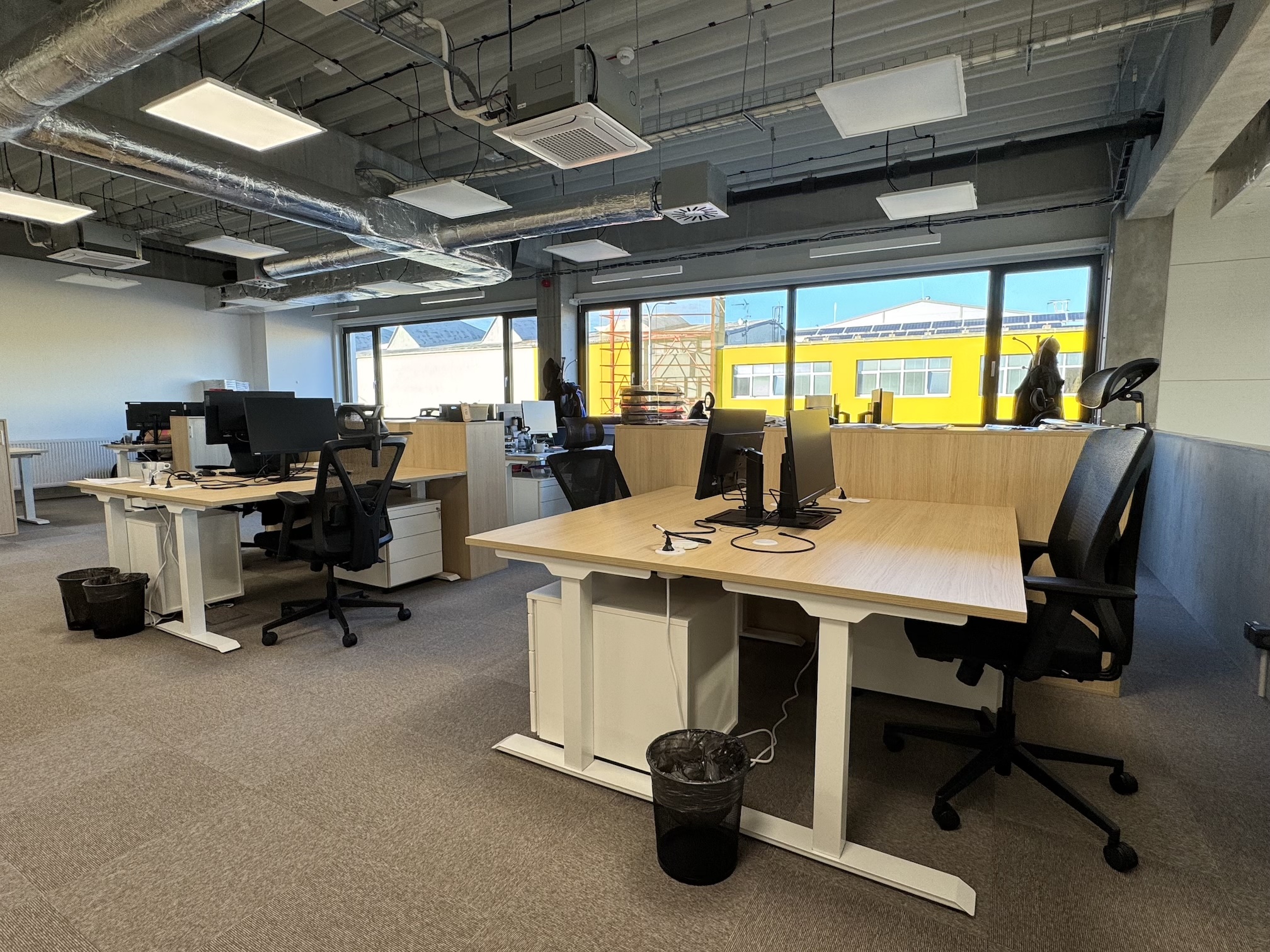 Klíčovou částí realizace byla dodávka kancelářských stolů FIXTER určených pro více než 100 osob. Součástí stolů jsou integrované přípojné zásuvkové moduly, které umožňují komfortní práci s technologiemi a přehledné vedení kabeláže. Pracoviště doplňují ergonomické židle Kolinn, zajišťující celodenní pohodlí a podporu zdravého sezení.