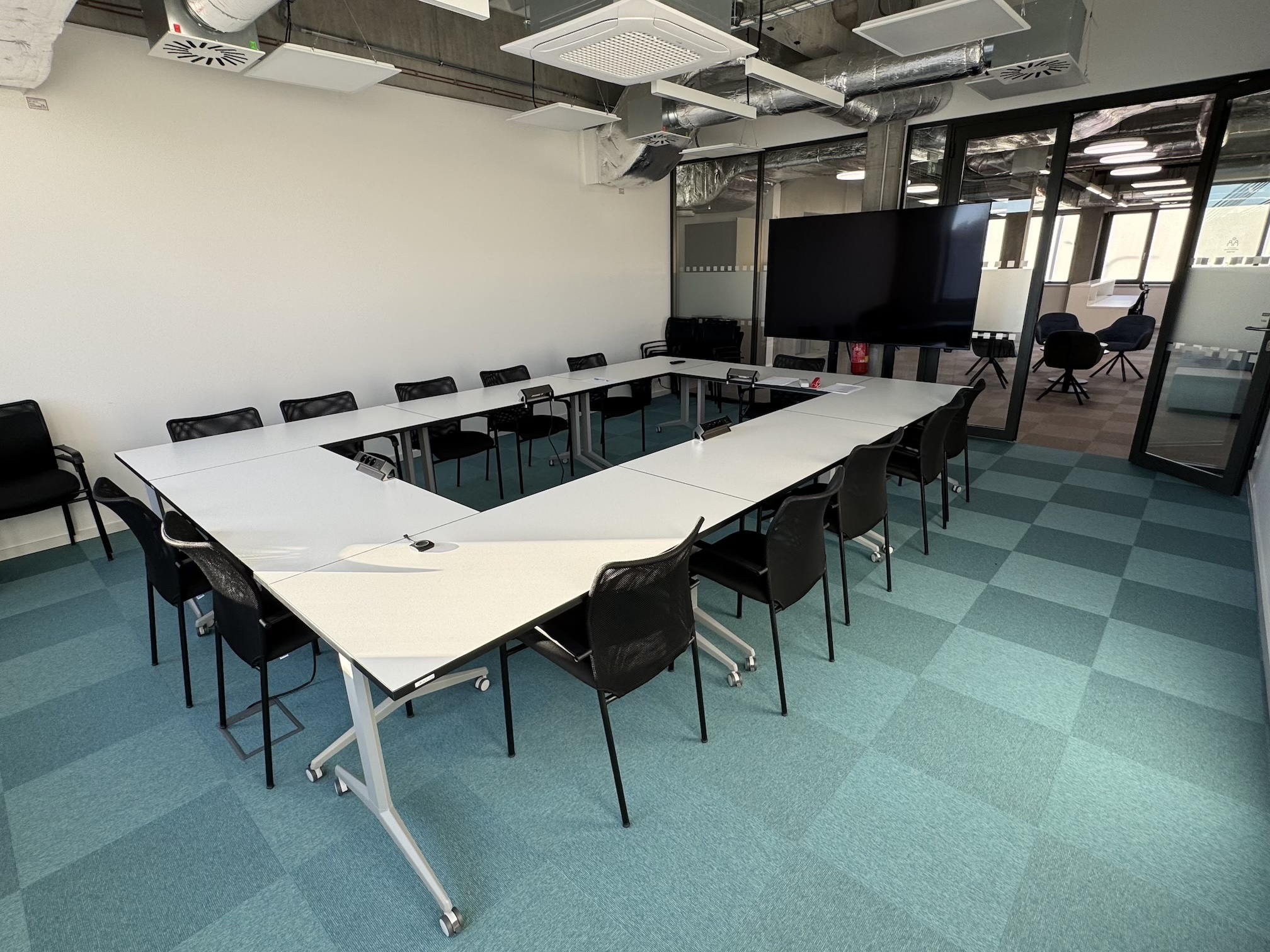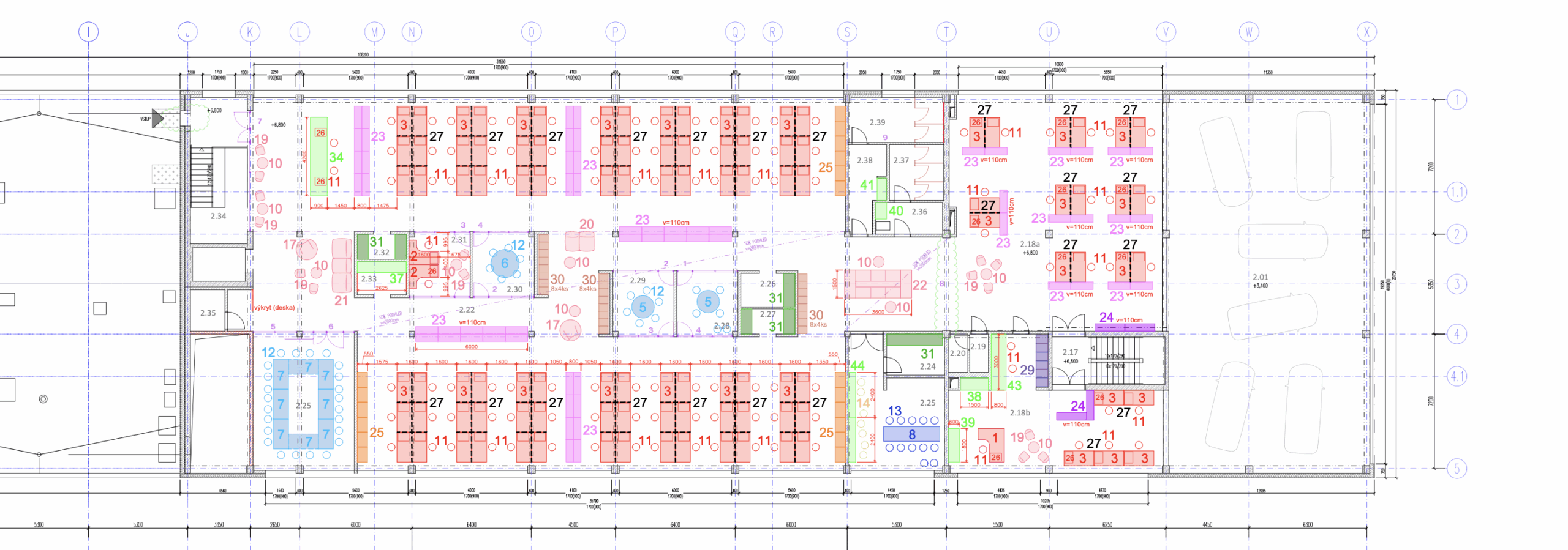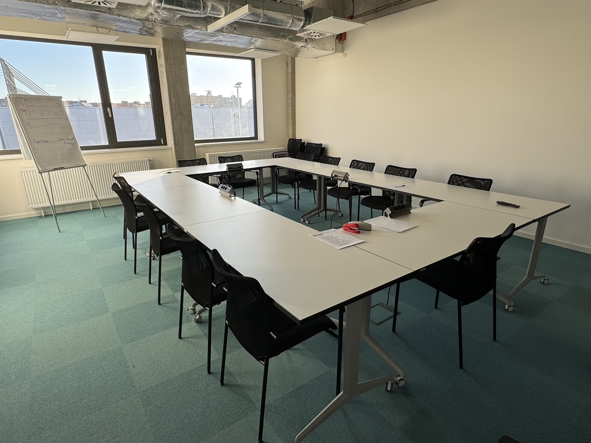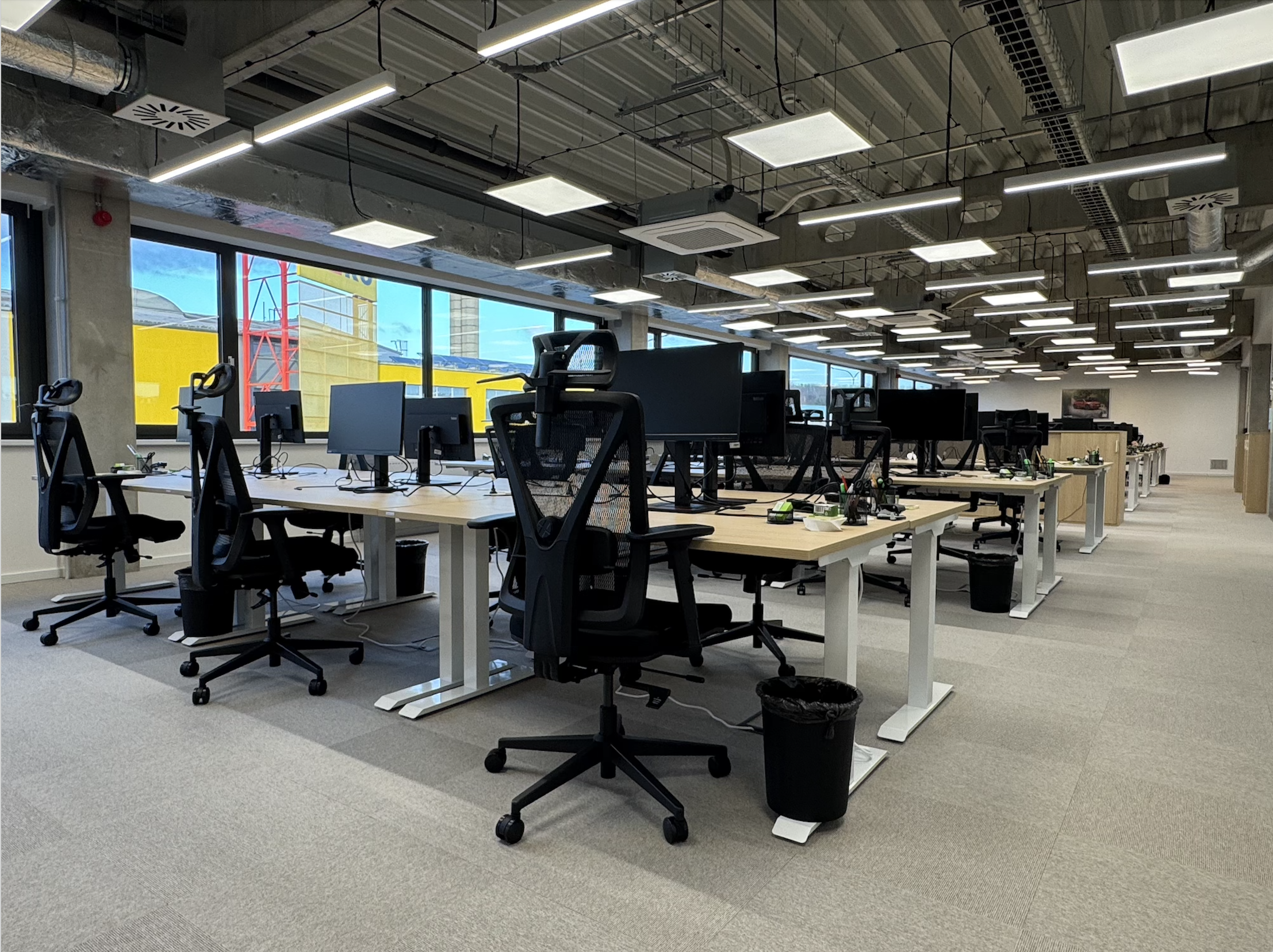 Klíčovou částí realizace byla dodávka kancelářských stolů FIXTER určených pro více než 100 osob. Součástí stolů jsou integrované přípojné zásuvkové moduly, které umožňují komfortní práci s technologiemi a přehledné vedení kabeláže. Pracoviště doplňují ergonomické židle Kolinn, zajišťující celodenní pohodlí a podporu zdravého sezení.
