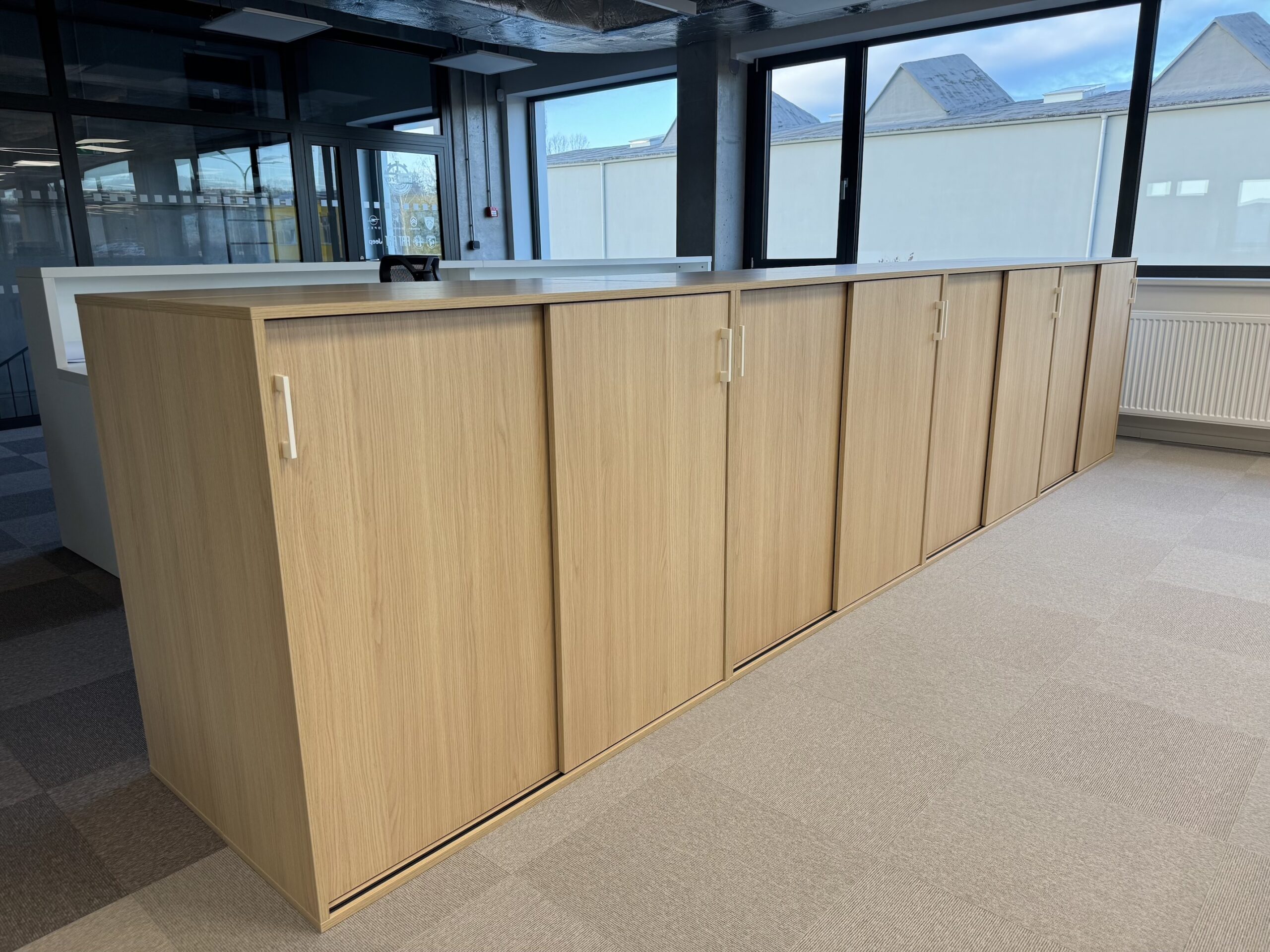 Do kanceláří a administrativního provozu jsme dodali také skříně a lockery, které zaměstnancům poskytují bezpečný a praktický úložný prostor. Součástí projektu byly i regálové systémy do archivů, navržené s důrazem na maximální kapacitu a přehlednost ukládání dokumentů.