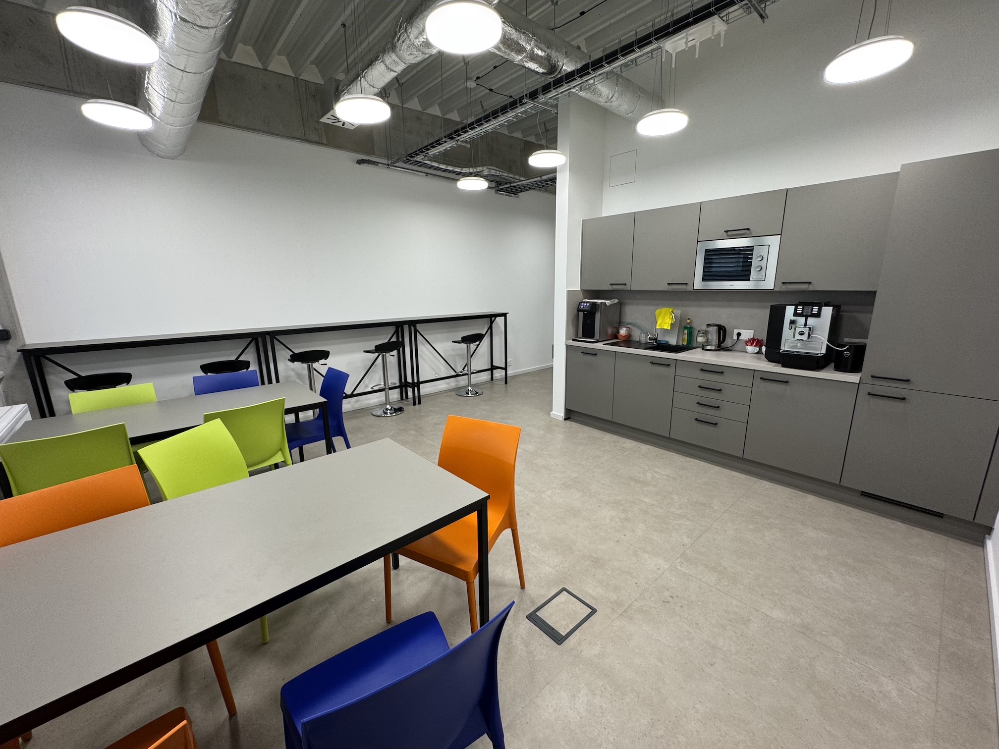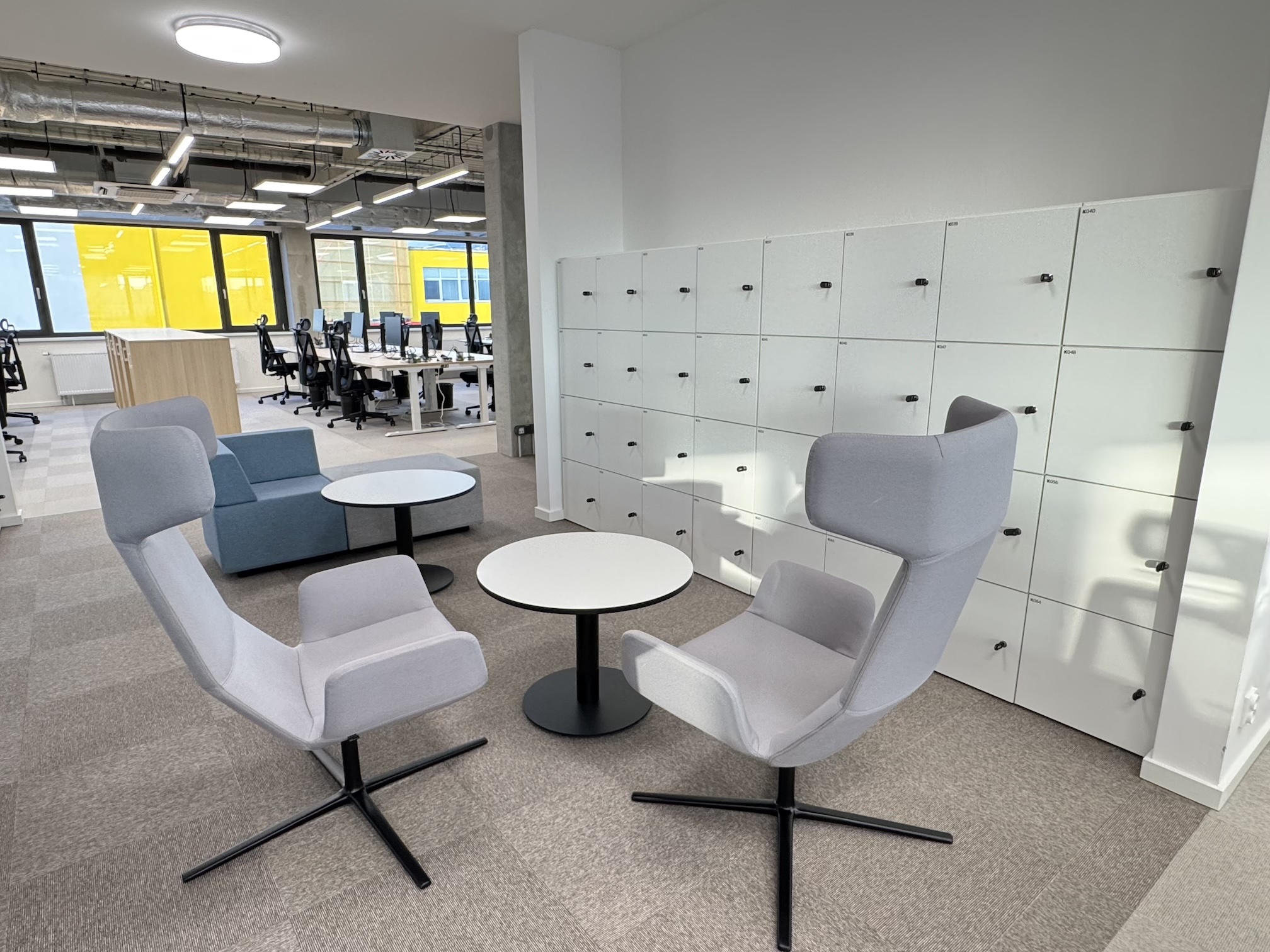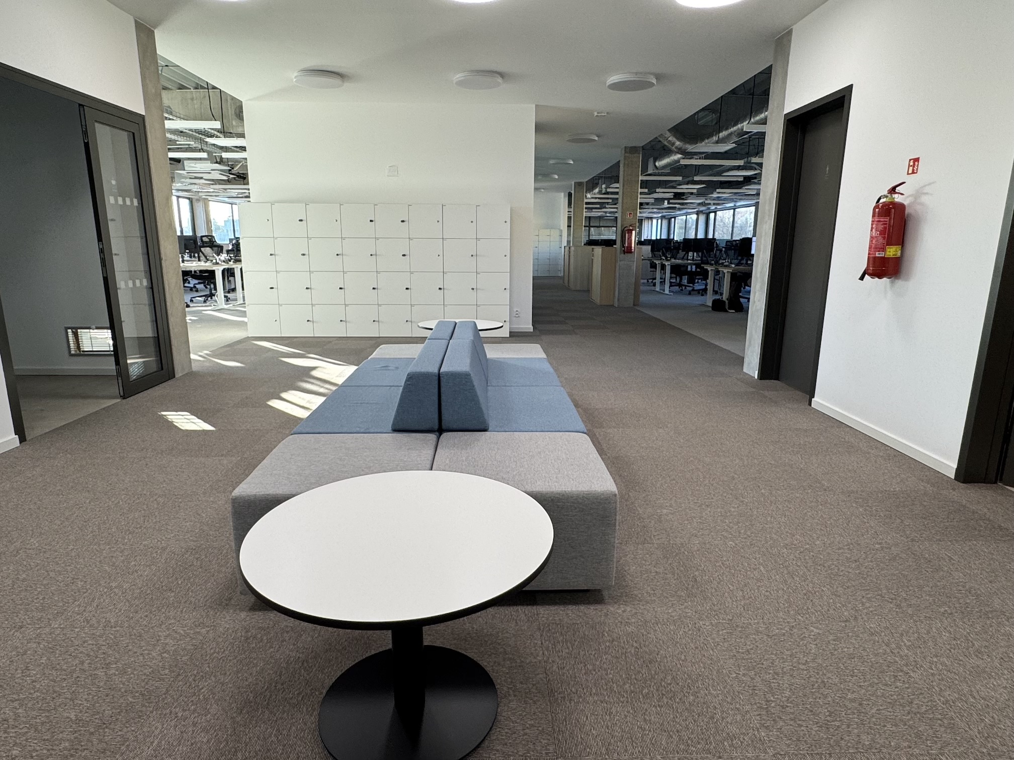 Komfort zaměstnanců podporuje i kompletně vybavená jídelna a kuchyňky, které jsou navržené pro každodenní provoz. Pro relaxaci a neformální setkávání slouží nově vytvořená odpočinková místa doplněná o křesílka a modulární sedačky, umožňující flexibilní uspořádání prostoru.